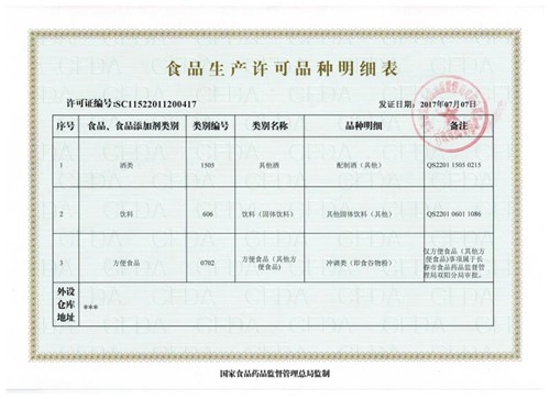 食品生產(chǎn)許可品種明細表