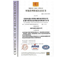 環(huán)境管理體系認證證書
